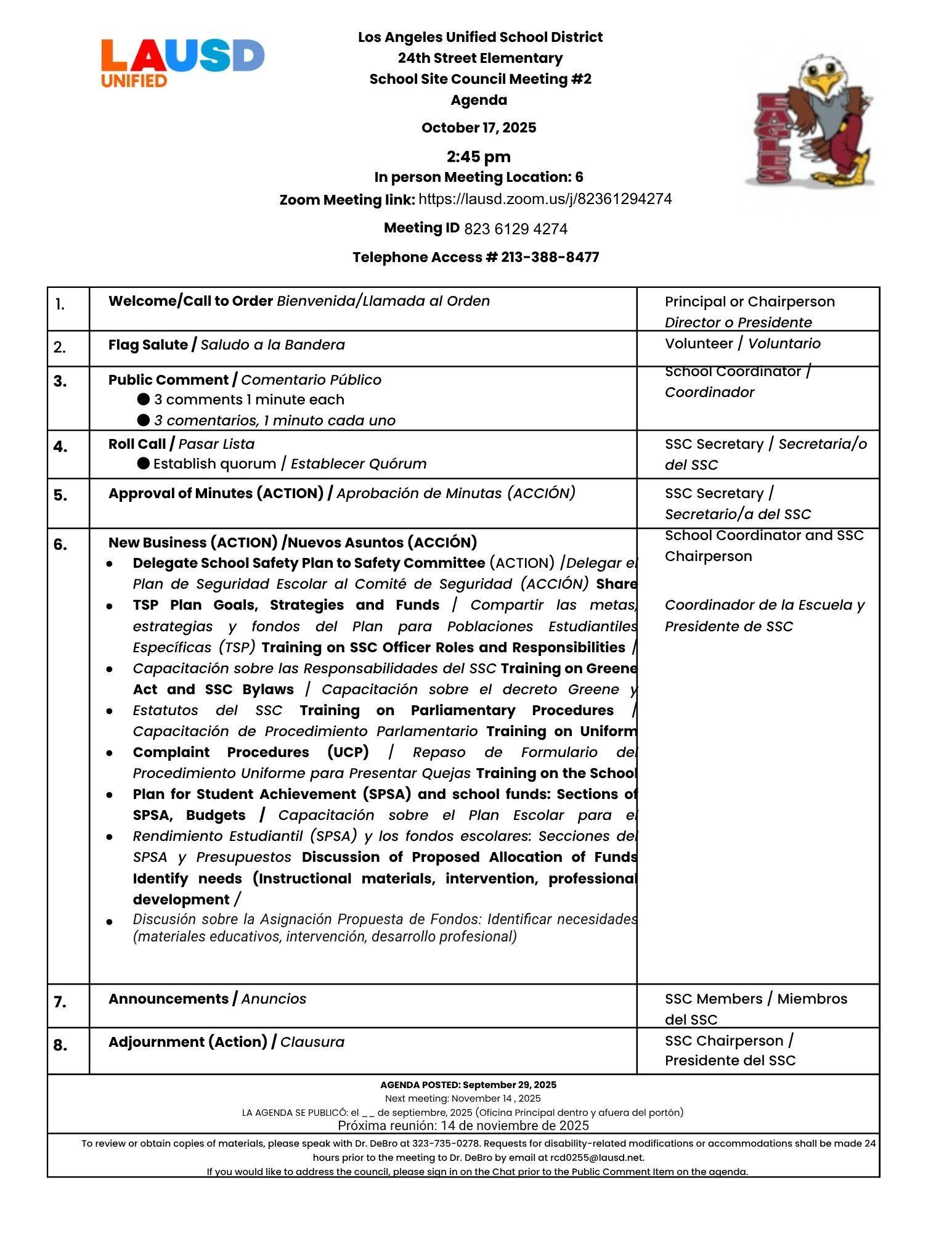 School Site Council Meeting #2 Agenda/ Junta SSC #2