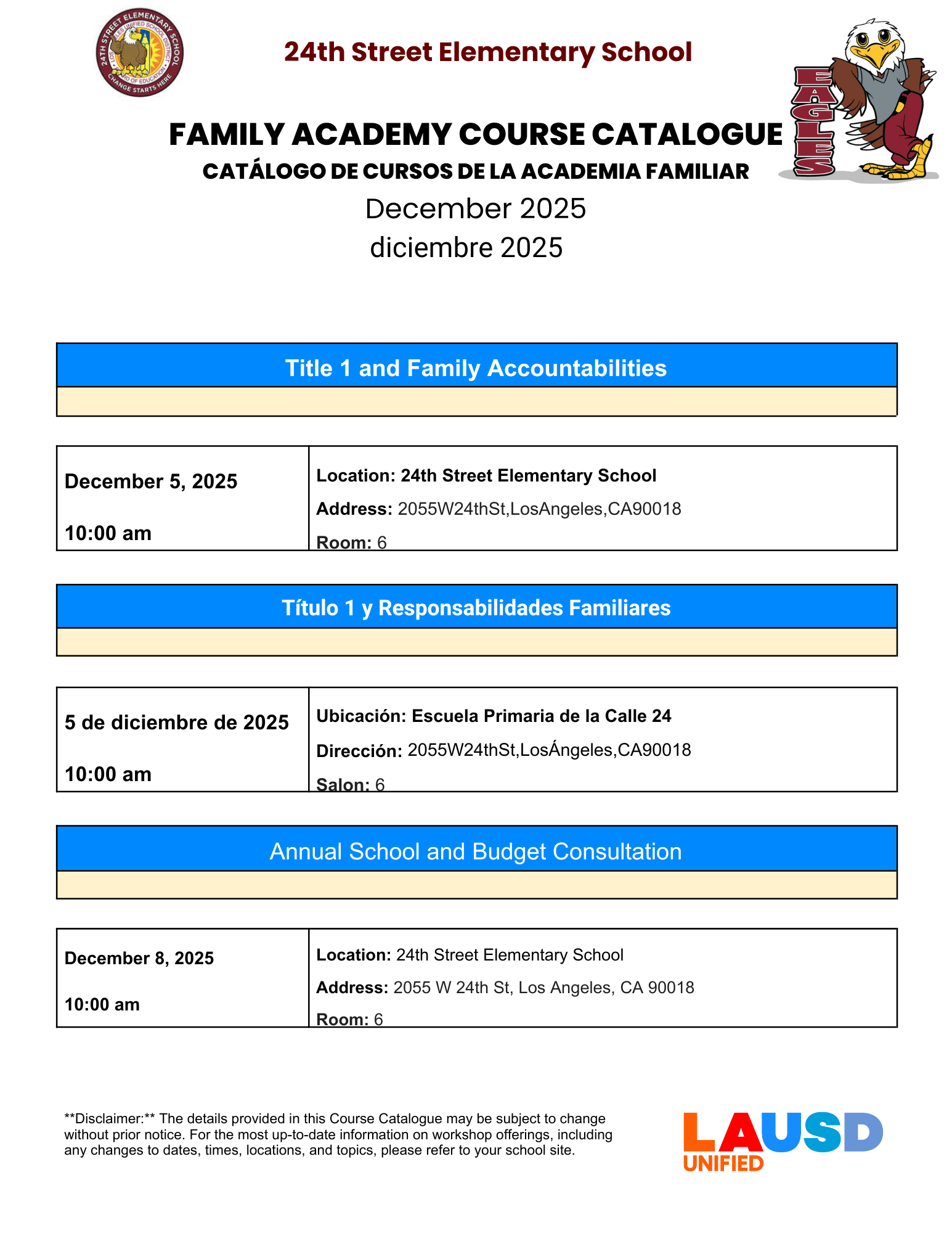 Title 1 and Family Accountabilities/ Título 1 y Responsabilidades Familiares / Annual School and Budget